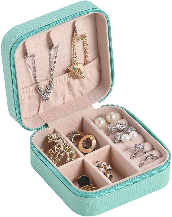 - COMPACT STORAGE: This mini jewelery organizer provides ample storage space without taking up much room. Multiple compartments hold necklaces, bracelets, earrings, rings and more in an organized fashion.